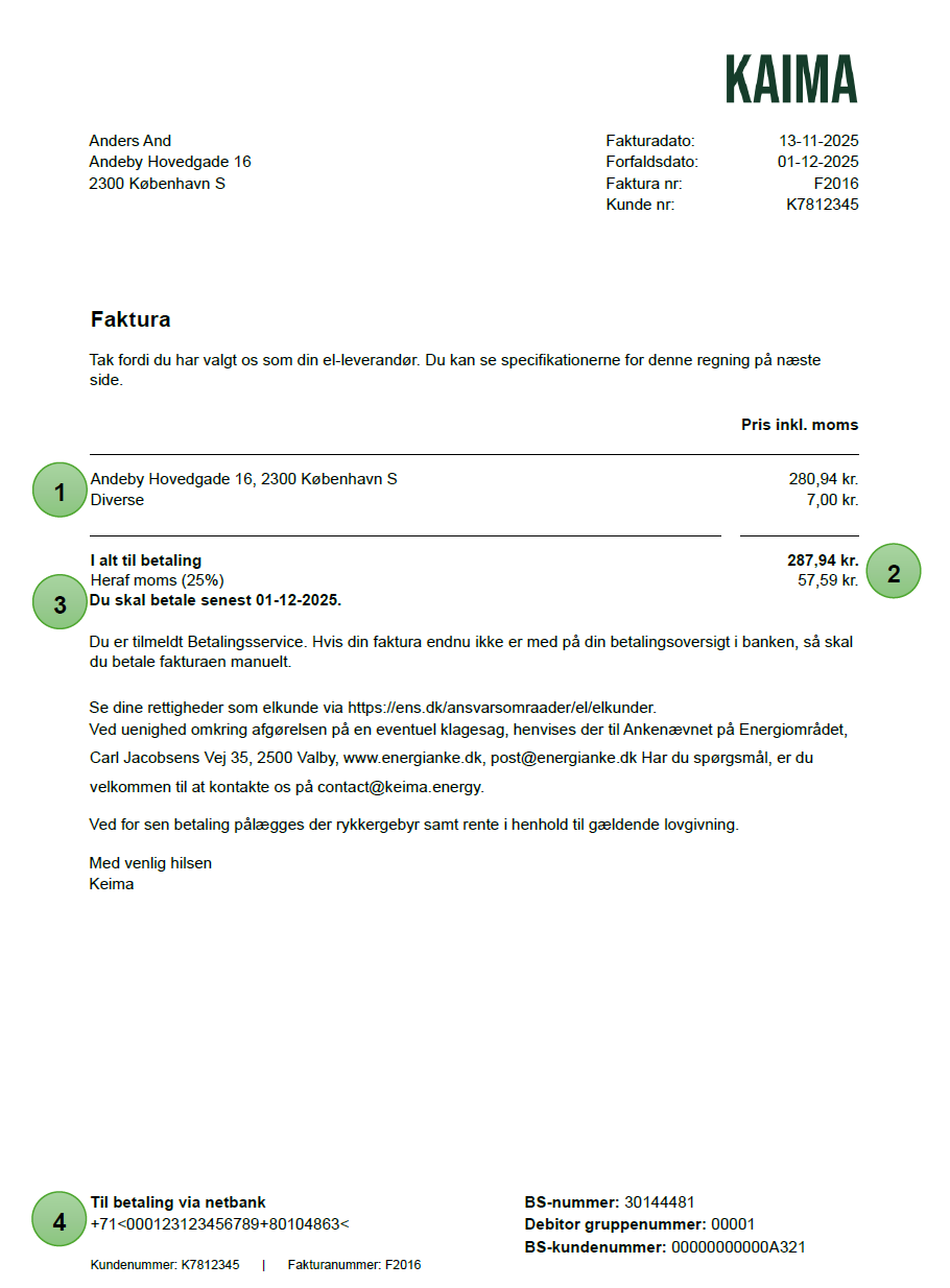 3. Her ser du regningens forfaldsdato, altså den dato regningen senest skal være betalt.